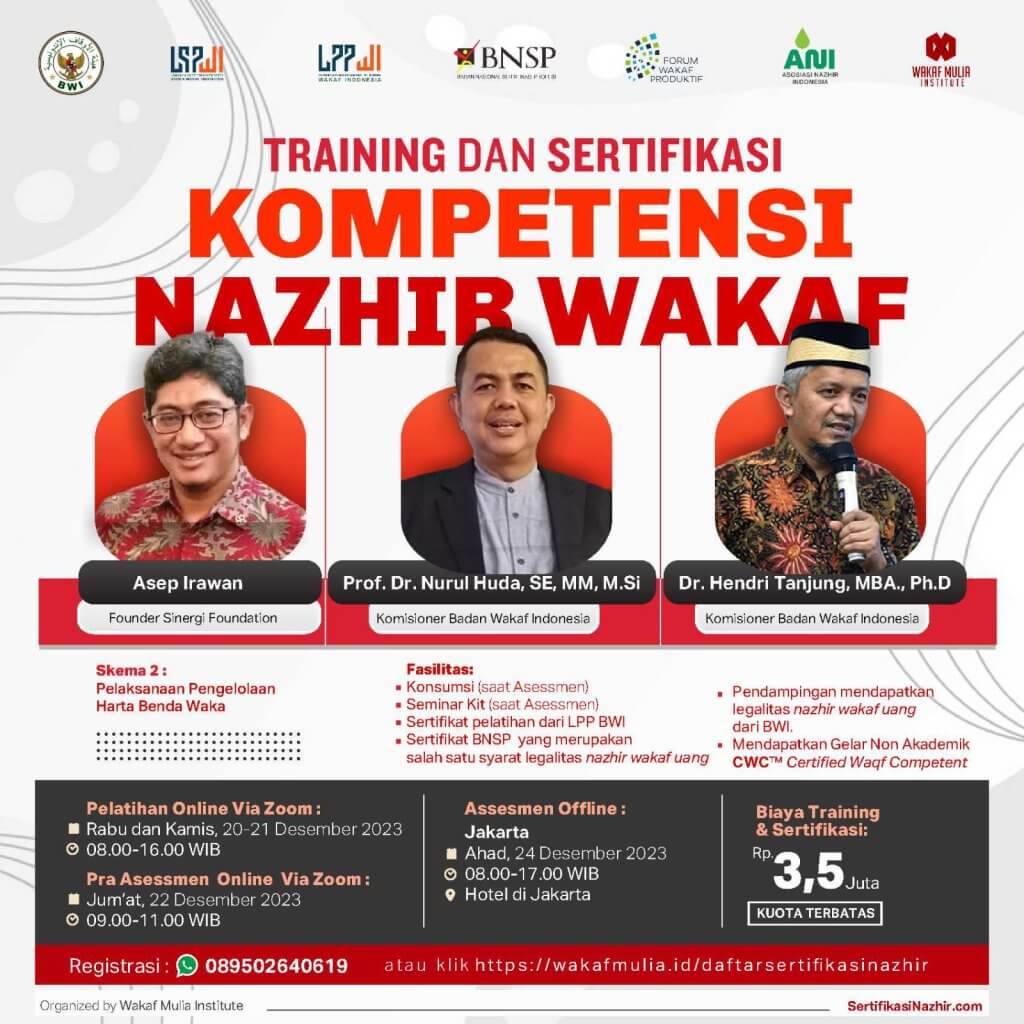 Training dan Sertifikasi Nazhir Wakaf standar BNSP oleh LSP BWI 20 Admin Wakaf Mulia Training dan Sertifikasi Nazhir Wakaf standar BNSP oleh LSP BWI 20 Read More »